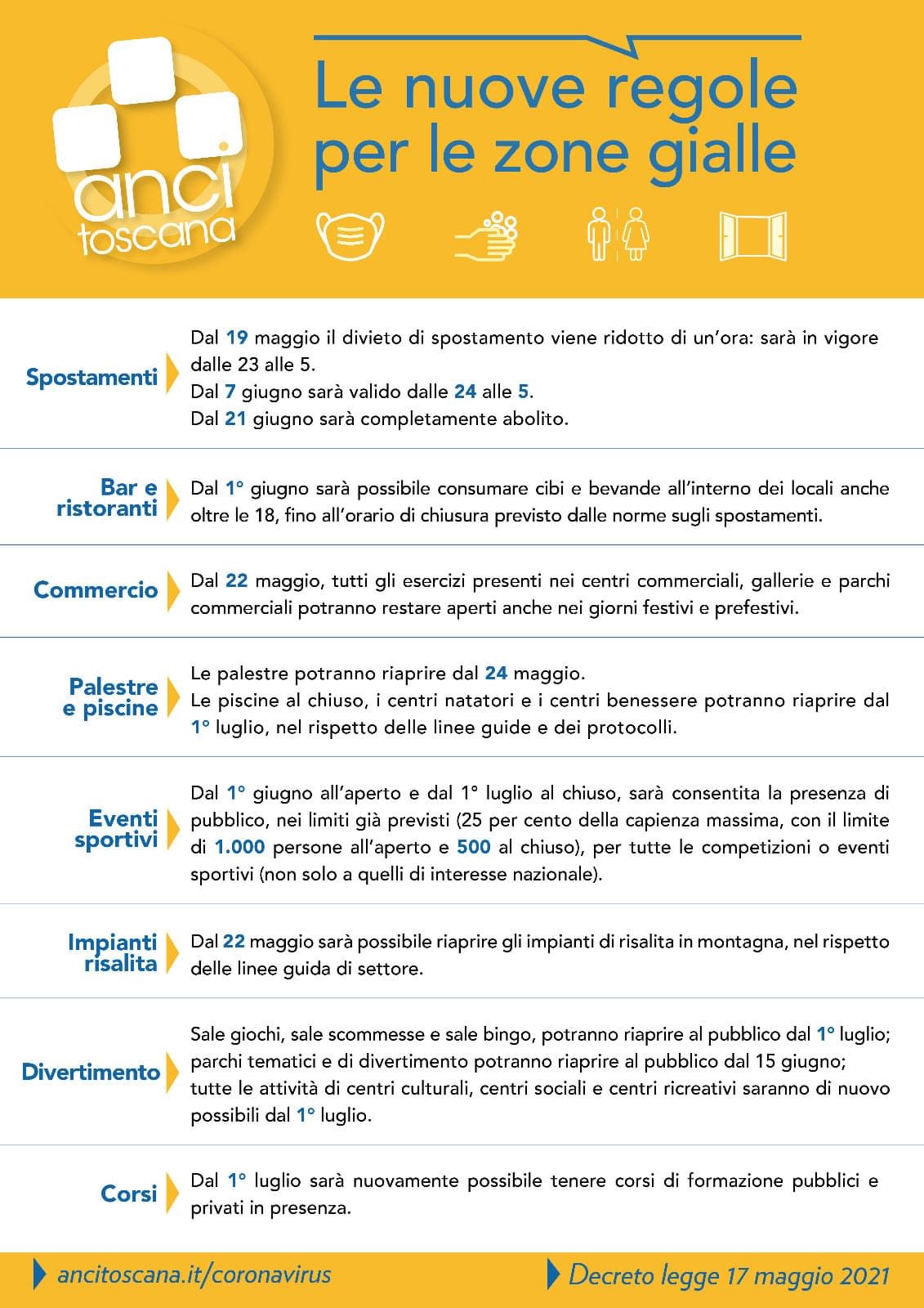 In allegato le nuove regole per le ZONE GIALLE dal 19 maggio.