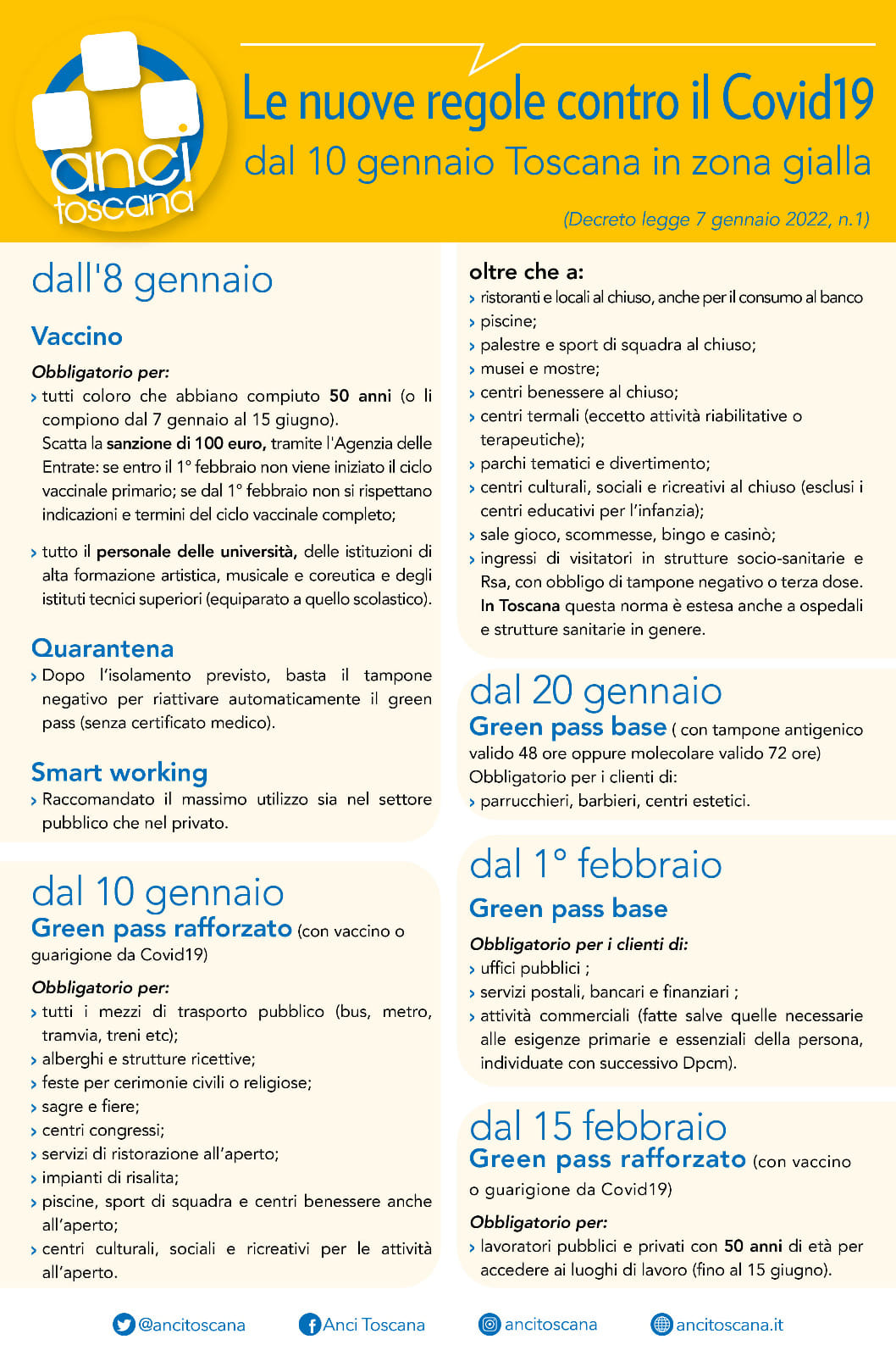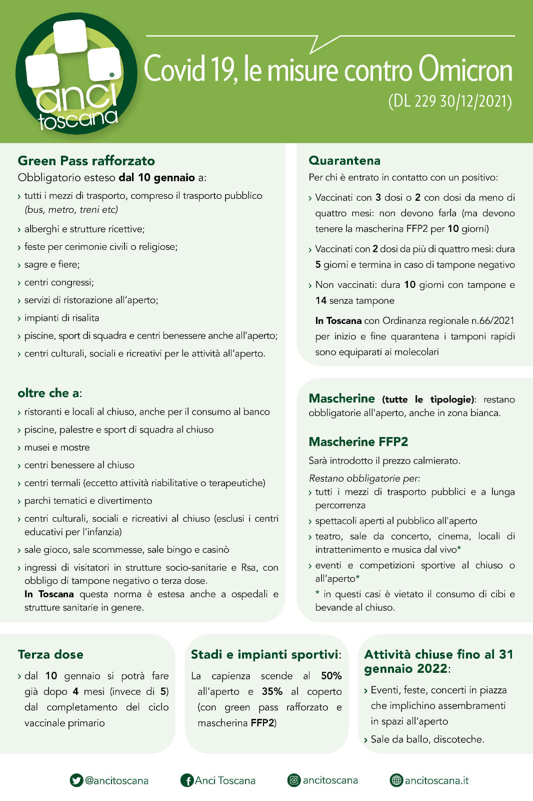 Le nuove regole introdotte dal D.L. 1 del 07/01/2022 e contro Omicron DL 229/30.12.2021. In allegato le schede riepilogative delle norme in vigore. Link sezione Emergenza Covid del Comune