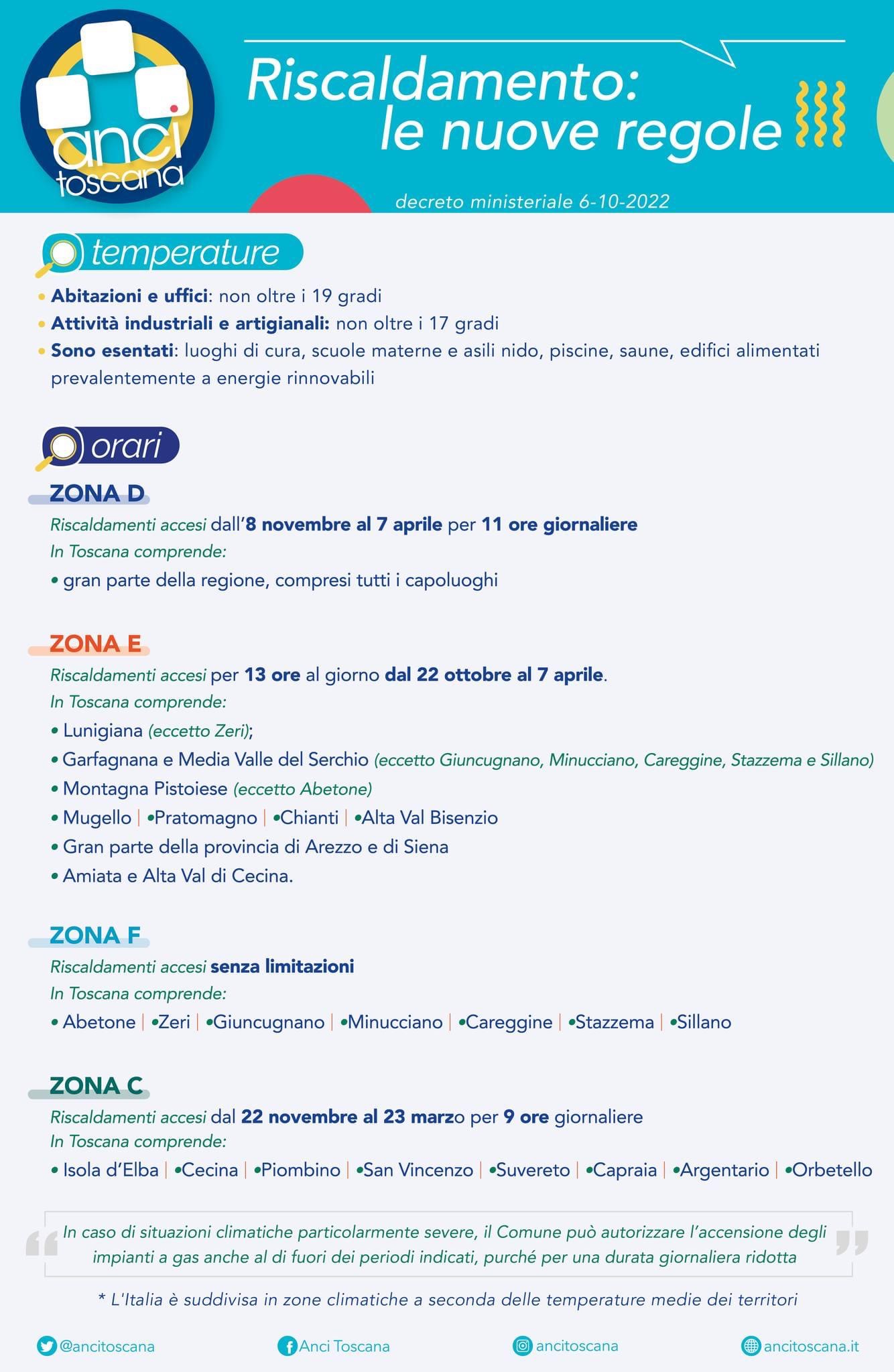 In allegato la scheda di AnciToscana con le regole sull'accensione dei riscaldamenti in Toscana.