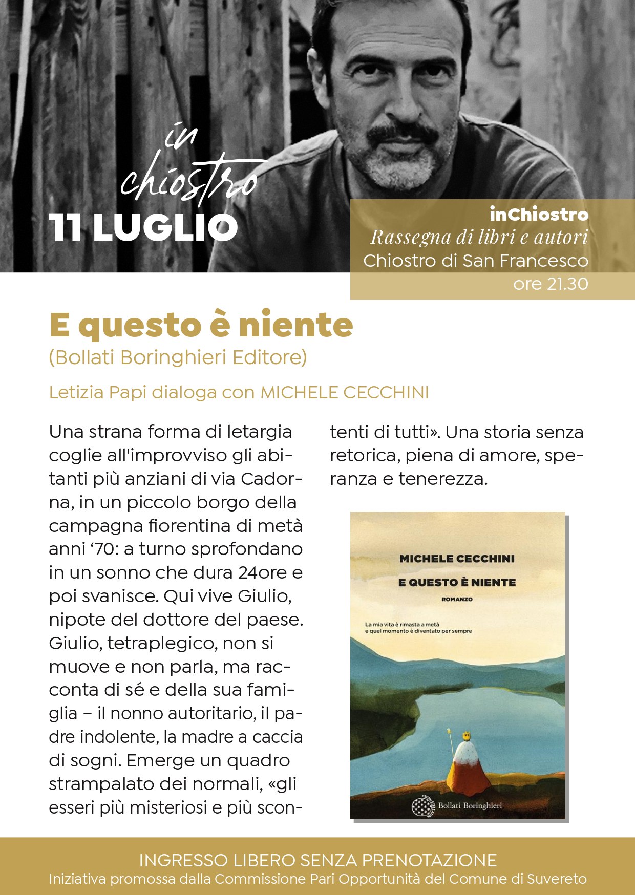 È Michele Cecchini con il suo libro ‘’E questo è niente’’ ad aprire lunedì 11 luglio alle 21.30 al Chiostro di San Francesco InChiostro, la rassegna di libri e autori che si tiene a Suvereto ogni anno.