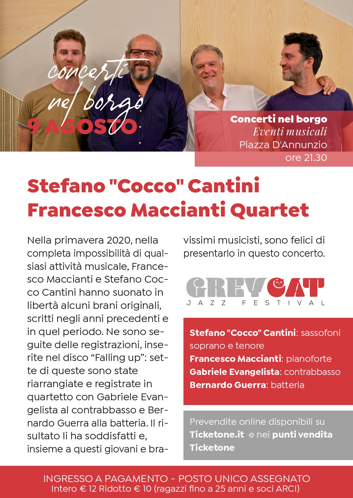Il Grey Cat Jazz Festival fa tappa a Suvereto con Stefano ‘’Cocco’’ Cantini e Francesco Maccianti Quartet.