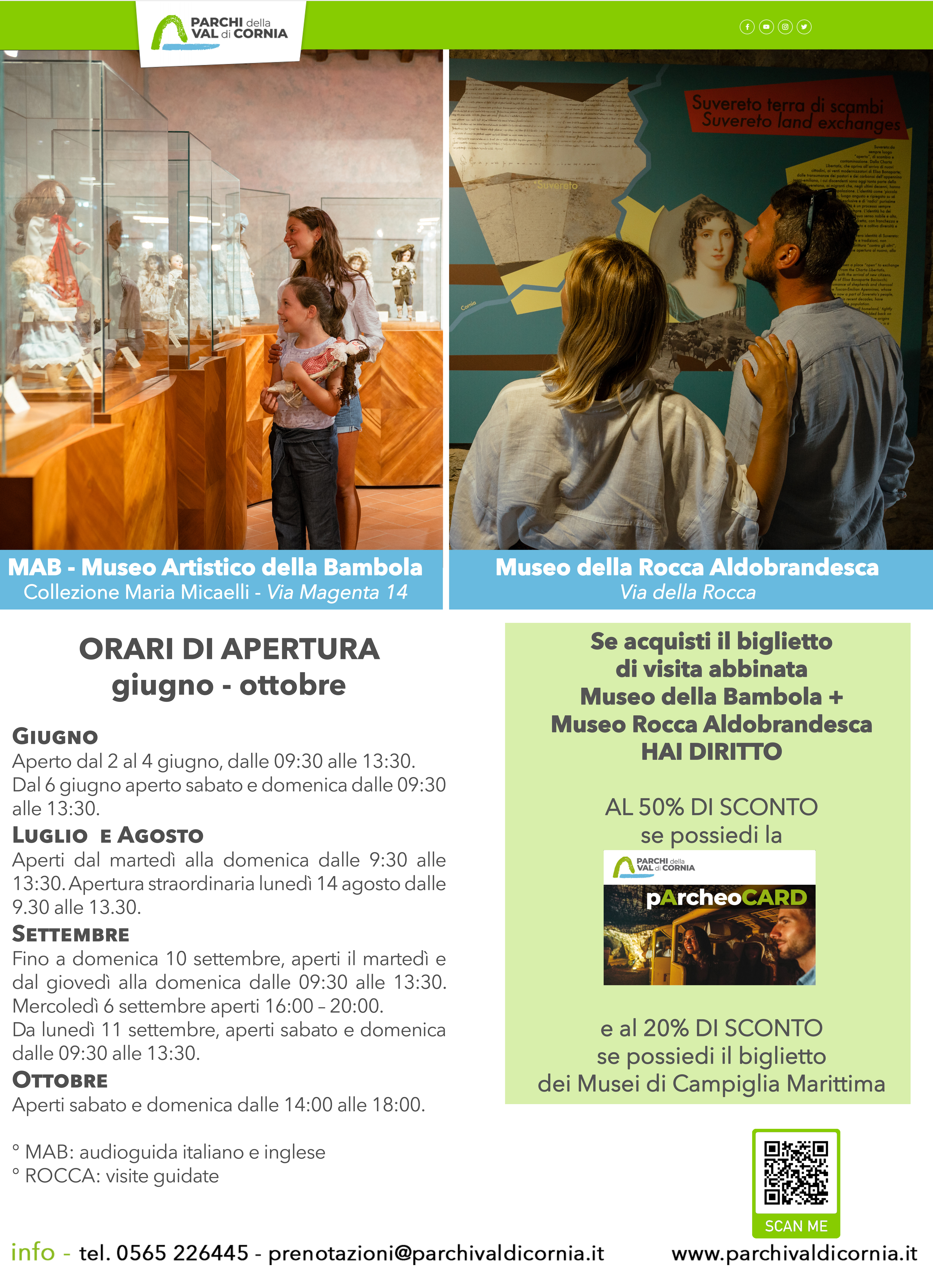 Con l'arrivo della bella stagione riaprono i due musei a Suvereto: il Museo Artistico della Bambola (MAB) e il Museo della Rocca Aldobrandesca (MURA).