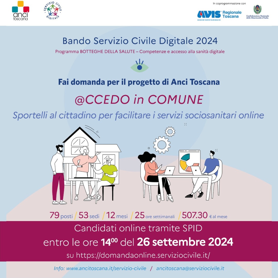 Un anno in Comune a Suvereto con il Servizio Civile Universale: fino alle ore 14.00 del 26 Settembre c'è tempo per presentare domanda per il progetto ''@accedo in Comune'', lo sportello al cittadino per facilitare i servizi sociosanitari online.