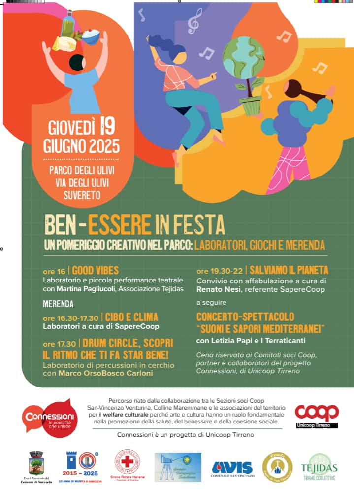 Un pomeriggio dedicato al benessere, alla socialità e alla condivisione: mercoledì 19 giugno, a partire dalle ore 16, il Parco degli Ulivi di Suvereto ospiterà l’evento “Ben-Essere in Festa”, organizzato dalla Sezione Soci Coop locale.