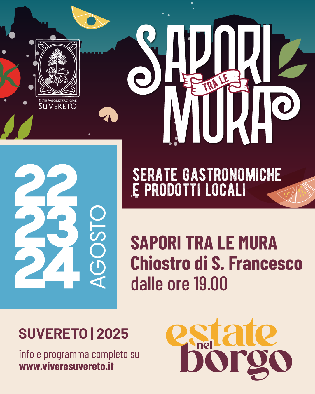 Dal 22 al 24 agosto 2025, Suvereto si prepara ad accogliere una nuova edizione di "Sapori tra le Mura", l’evento enogastronomico che celebra la cucina tradizionale del territorio toscano all’interno di uno dei borghi più affascinanti della Val di Cornia.