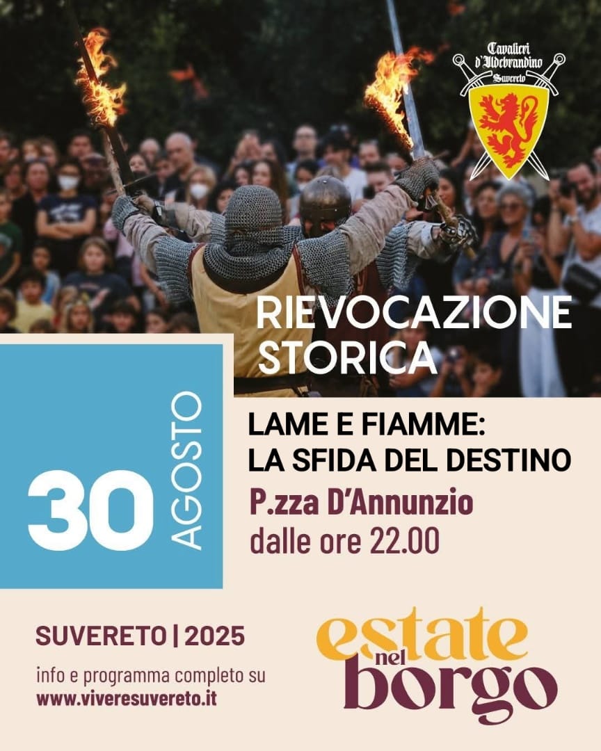 Sabato 30 agosto, con inizio alle ore 22:00 in Piazza D’Annunzio, andrà in scena “Lame e fiamme: la sfida del destino”, un viaggio epico tra luce e oscurità, dove la guerra danza e il destino giudica.