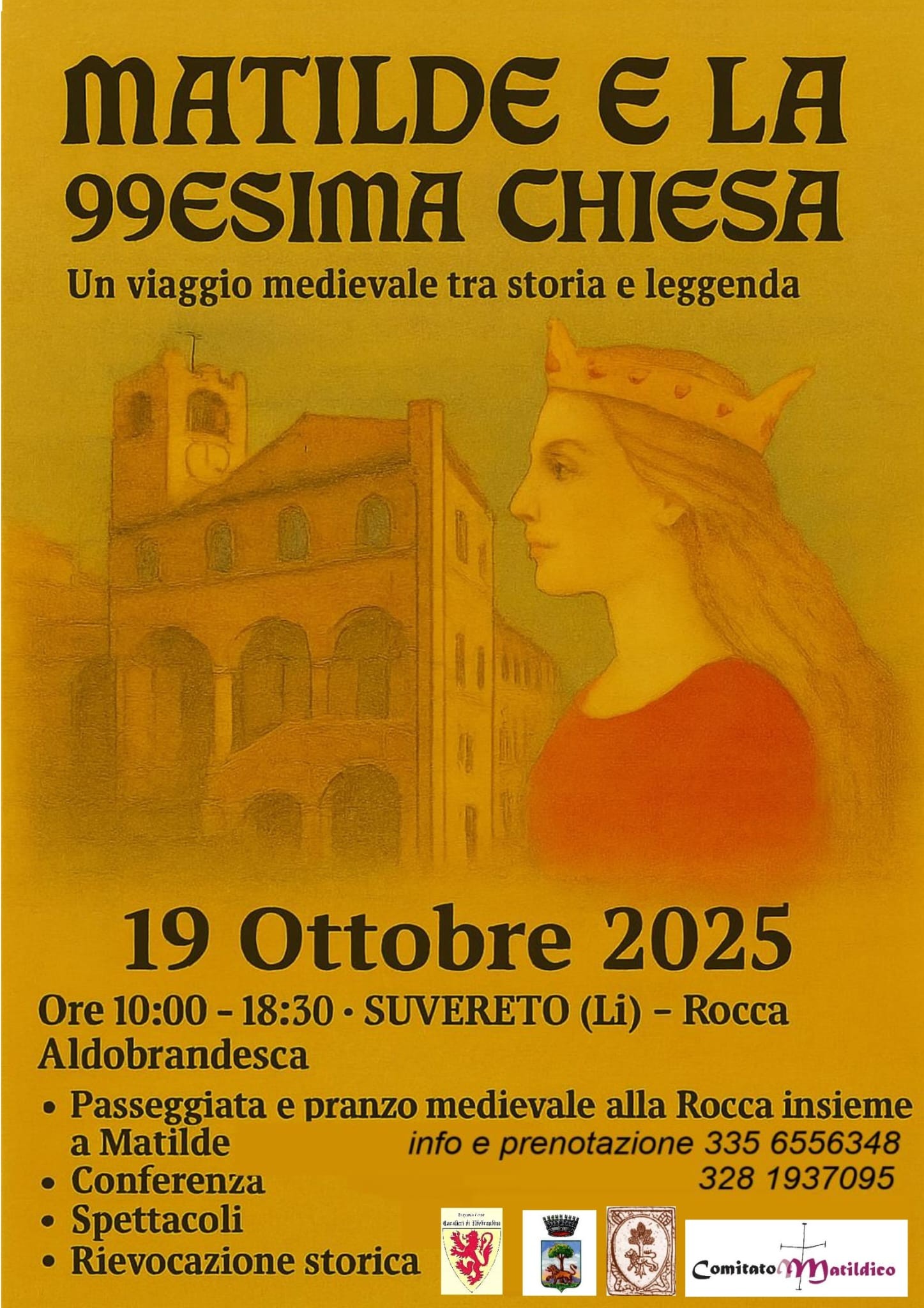 Suvereto si prepara ad accogliere un evento straordinario che unisce storia, leggenda e spettacolo: "Matilde di Canossa e la 99ª Chiesa", una giornata dedicata alla celebre Grancontessa, figura centrale della storia medievale italiana.