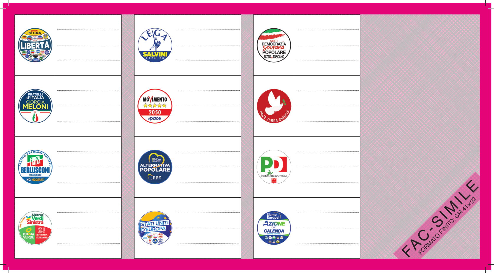 FAC SIMILE SCHEDA ELETTORALE ELEZIONI EUROPEE 2024