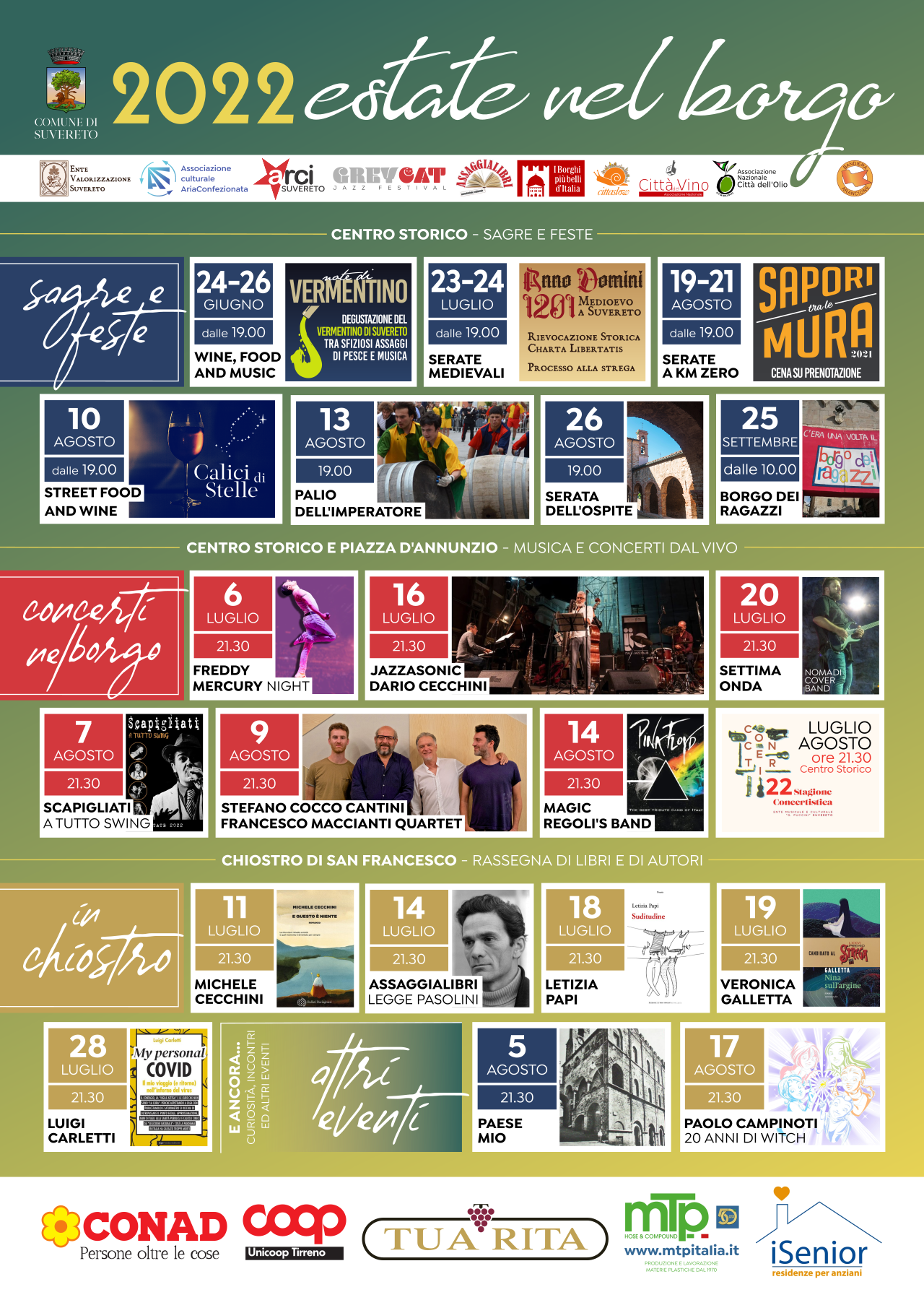 Cinque in tutto gli appuntamenti previsti per quest’estate, organizzati dal Comune di Suvereto in collaborazione con l’Ente Valorizzazione di Suvereto e l’Associazione Aria Confezionata.