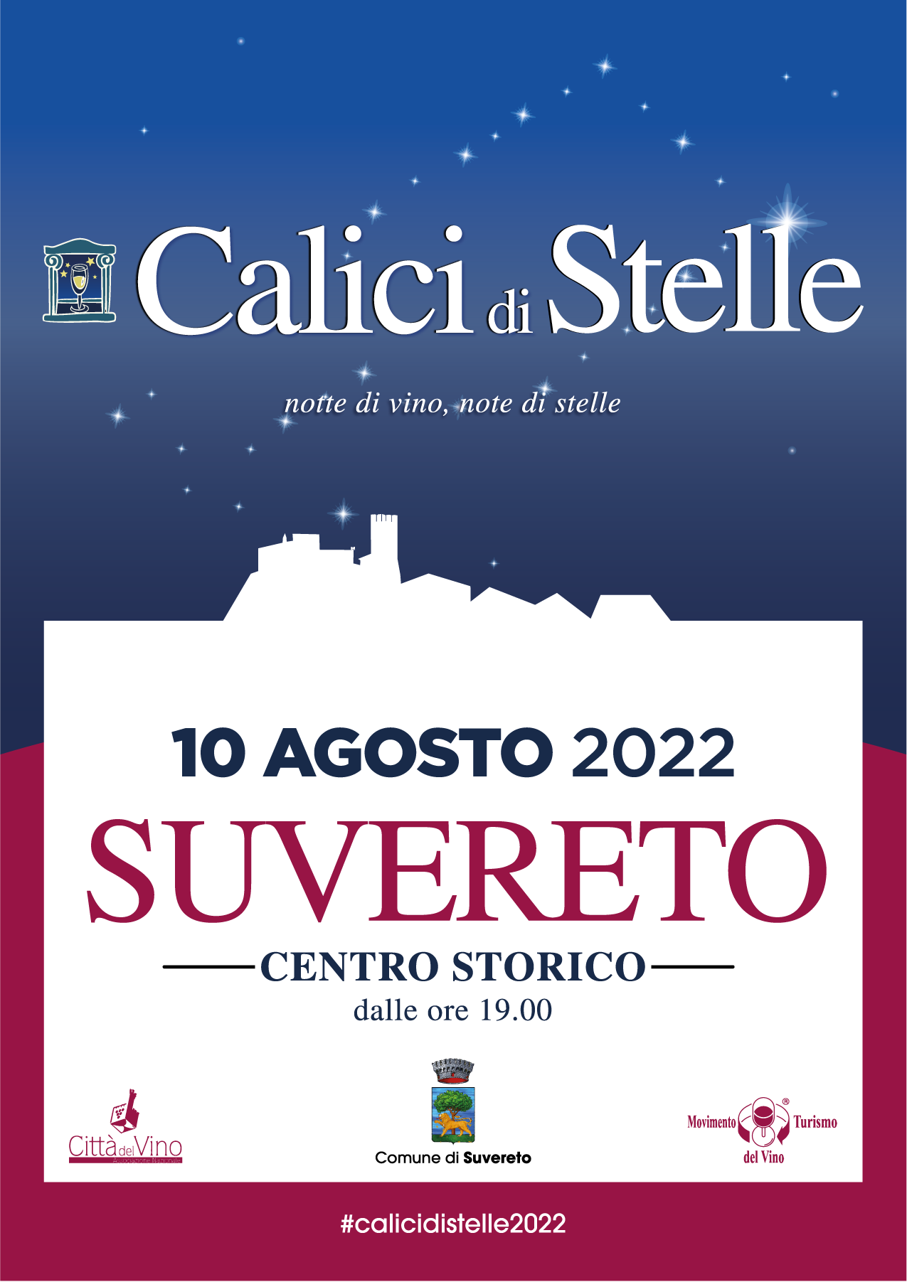 Promossa dall’Associazione Nazionale Città del Vino e dal Movimento per il Turismo del Vino per la notte di San Lorenzo, Calici di Stelle è organizzata dal Comune di Suvereto in collaborazione con Fisar Costa Etrusca e con il coinvolgimento delle aziende del vino di Suvereto e della Val di Cornia riunite nel nuovo Consorzio Suvereto Val di Cornia Wine e dell’Associazione Commercianti di Suvereto.