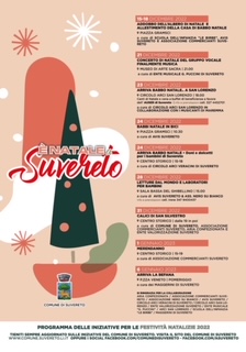 Dal 18 dicembre al 6 gennaio, si svolgerà a Suvereto un programma ricco di iniziative per grandi e piccini. Canti di Natale, concerti , l’arrivo del Babbo Natale, Calici di San Silvestro e l'arrivo della Befana. E il 1 gennaio nel Borgo MERENDANNO, una merenda e tante goloserie per festeggiare il nuovo anno all'interno dell'antico Borgo Medievale.